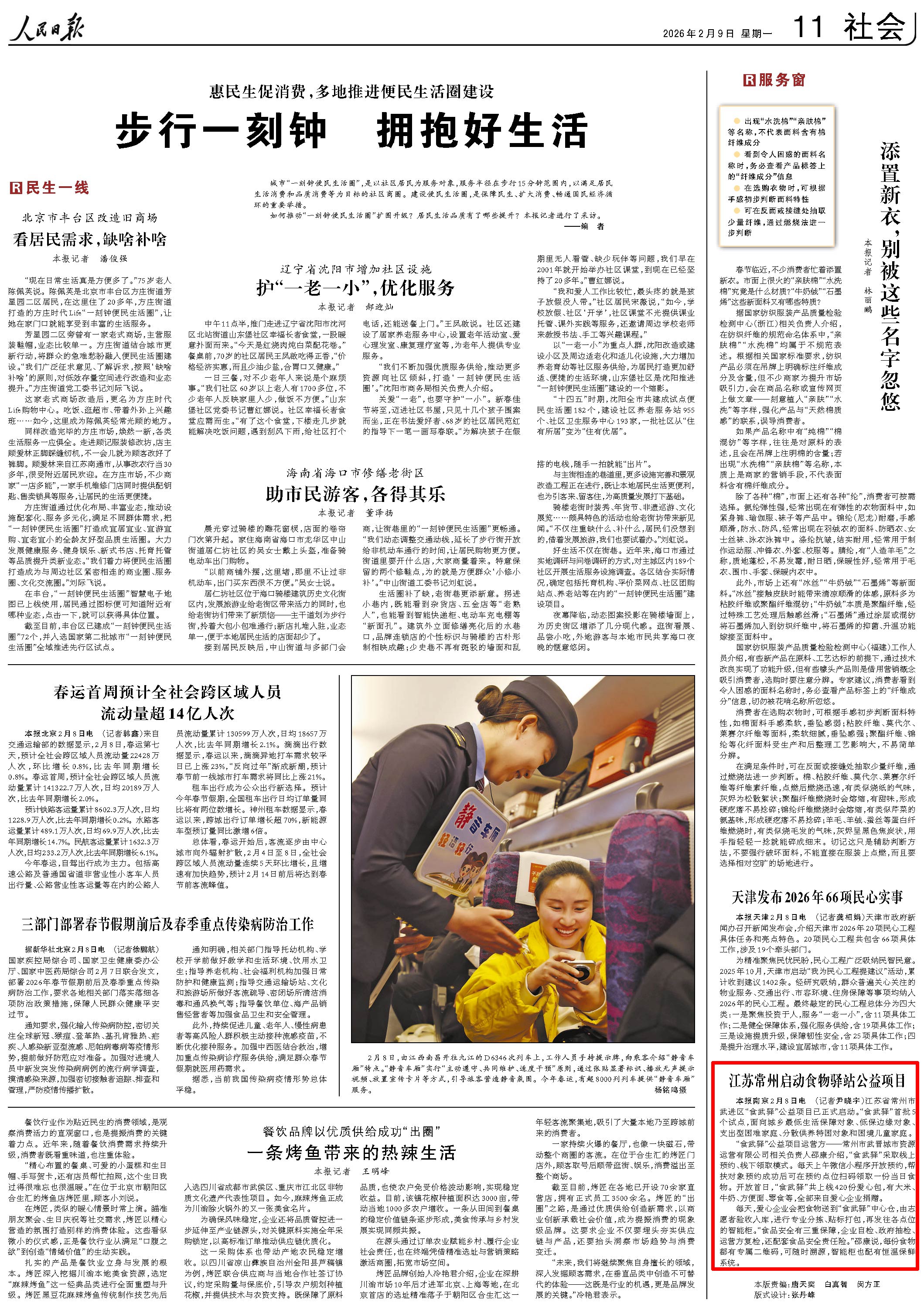 本报南京2月8日电 (记者尹晓宇)江苏省常州市武进区“食武驿”公益项目已正式启动。“食武驿”首批5个试点,面向城乡最低糊口保障对象、低保边缘对象、分离供养特困对象和窘境儿童家庭。